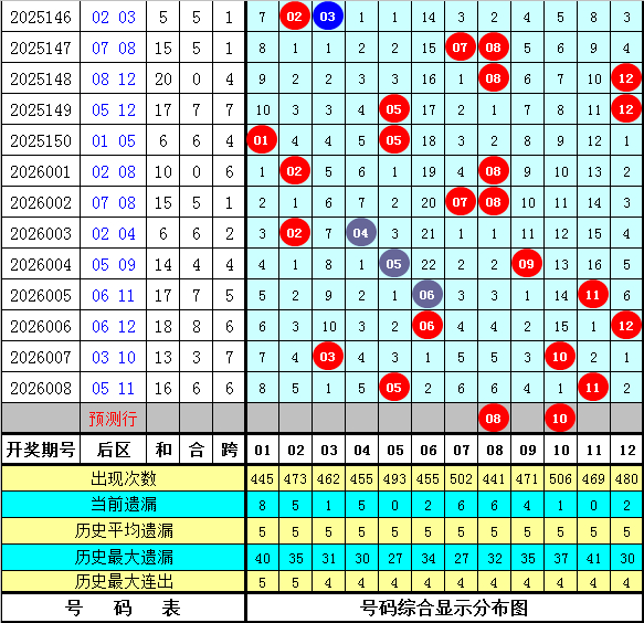 和值跨度:上期和值开出80,对比第2026007期和值飞腾了17个点位,本期展望和值在大号区域热出,看好出目下96周围。