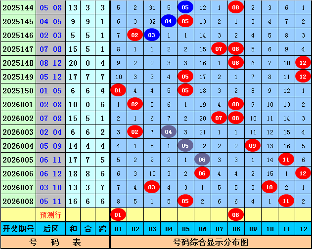 后差异析:在第009期历史同时开奖中,和值大小为14:5,跨度奇偶比为13:6,本期后区防范两码01和08。