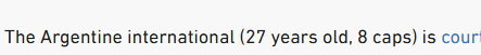 这位阿根廷国脚(20岁,代表阿根廷出场8次)不仅受到那不勒斯的嗜好,更遑急的是切尔西。
